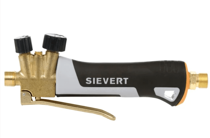 The Sievert Pro 88 Torch Handle features two control valves and a trigger mechanism. The first valve opens the gas supply to enable a pilot flame to be ignited. The second valve opens the main gas supply which is operated when the trigger is pressed, and this gas is then ignited by the pilot flame, giving semi automatic ignition (known as an economiser).