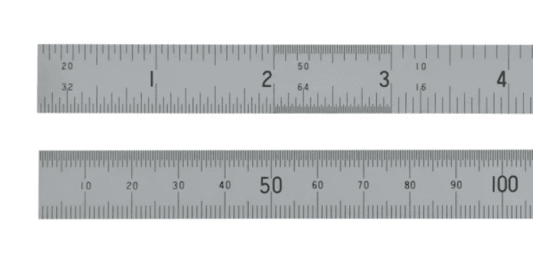 Fisher steel rule with satin chrome finish and photo etched markings, subdivided in mm, and 10th, 16th, 20th, 32nd, 64th.