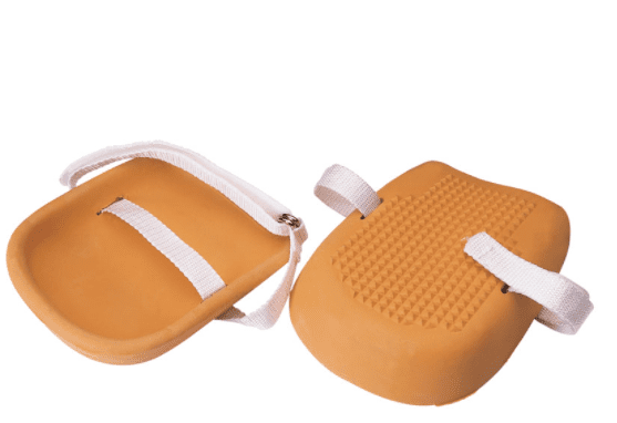 Pair of cellular rubber knee pads with strap and metal loop fixing, which helps fasten the knee pads more securely in place. The cellular rubber construction of the knee pads delivers extra comfort and durability, perfect for outside use and damp conditions.