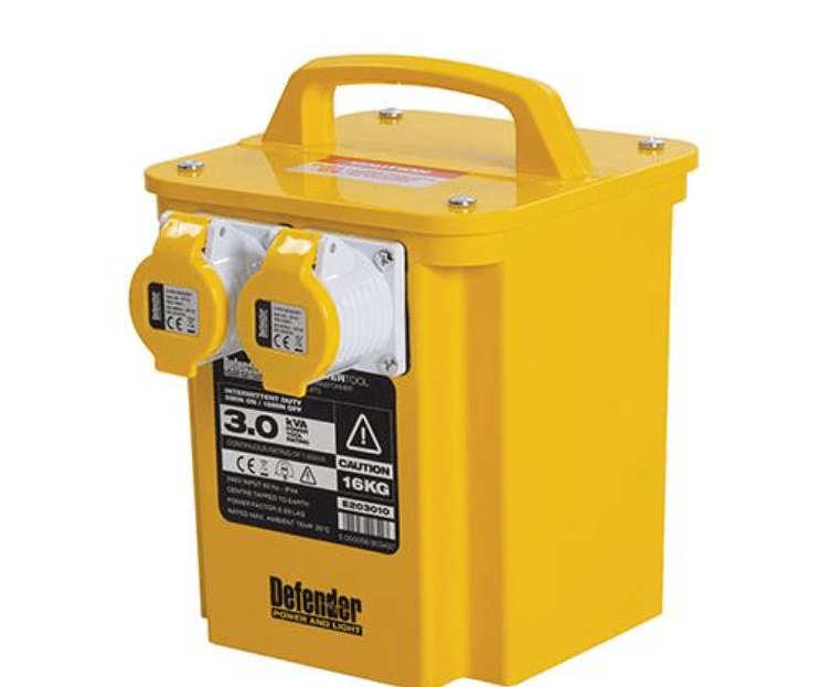 Popular transformer built for demanding construction tasks, where mains voltage needs stepping down and isolating. Tough GRP case with 2 x 110V 16A outlets. Resettable overload protection keeps tools and appliances safe while maximising work times.